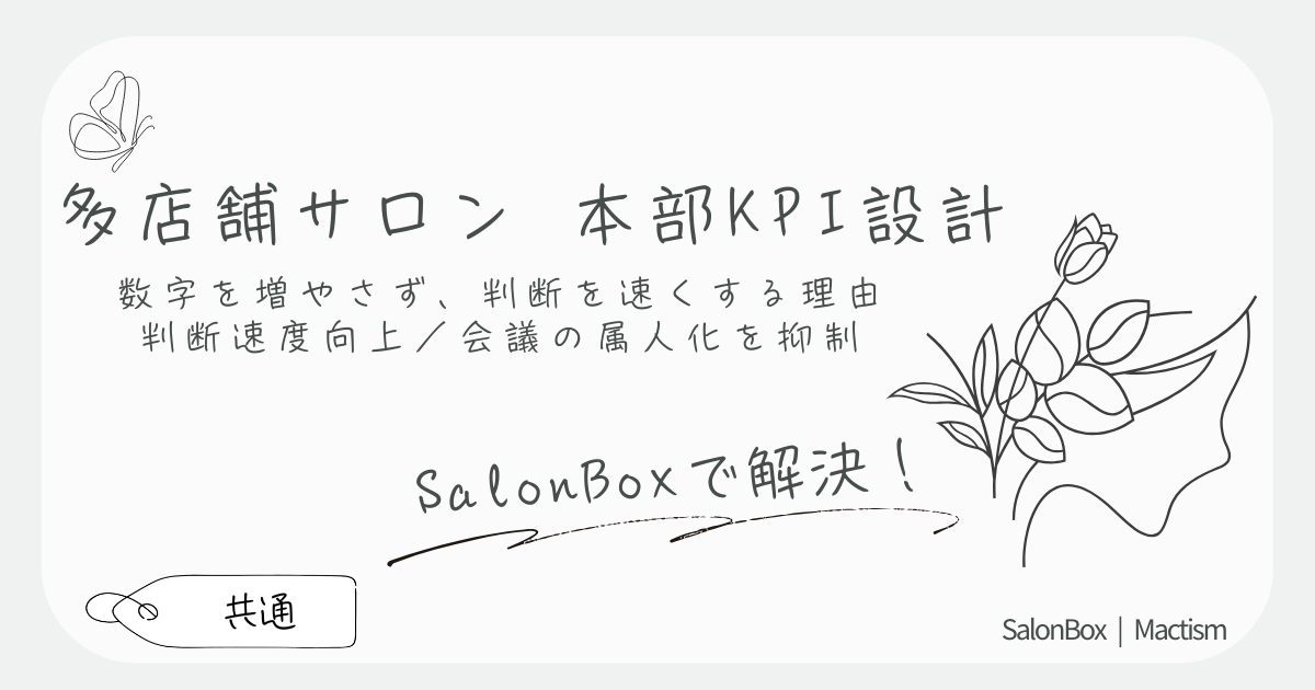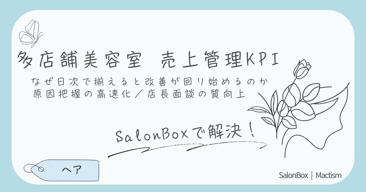 多店舗サロンの売上管理はKPIの設計で決まります。本部が毎日見る指標を5〜7個に絞り、日次・週次・月次で迷わず判断できる型を整理します。