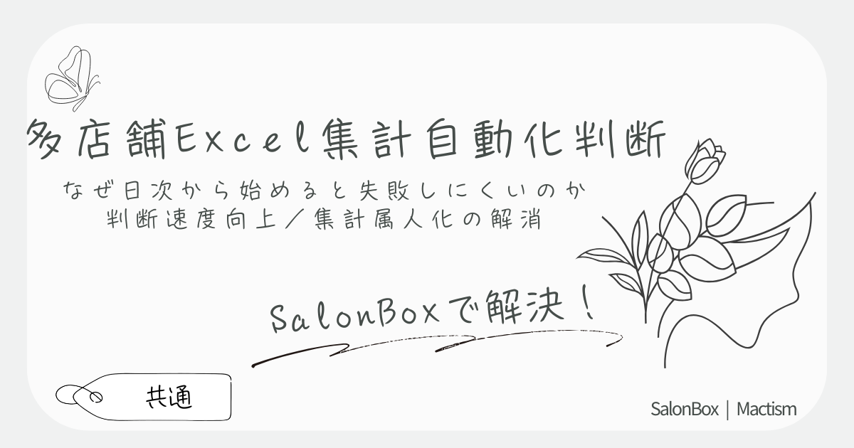 多店舗になるほどExcel集計は属人化し、判断が遅れます。限界サインの見分け方と、日次から小さく始める自動化の考え方を整理します。