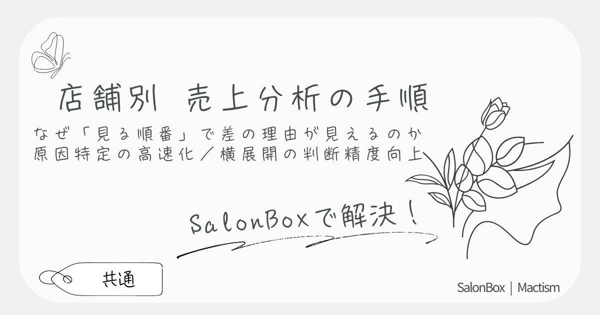 店舗別の売上差は見る順番で原因に近づけます。売上から分解し、勝ち店舗の型を横展開するための分析手順を整理します。