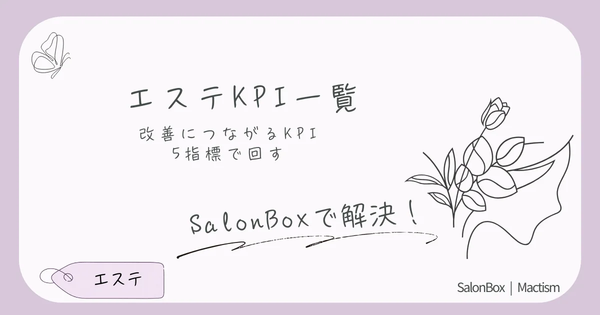 エステのKPIは増やすほど改善が止まります。売上・客数・客単価・粗利・達成率の5指標に絞り、日次・週次・月次で役割分担する運用の型を解説します。