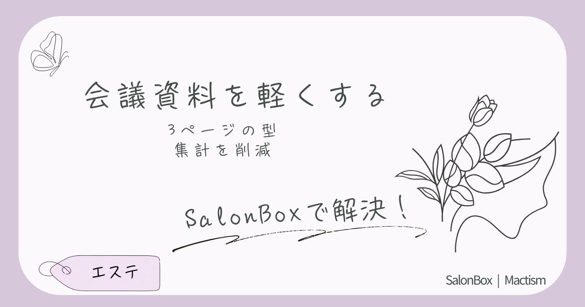 エステ本部の会議資料は、指標を固定し日次で自動集計するだけで一気に軽くなります。集計を減らし、改善の意思決定に集中できるレポートの型を解説します。