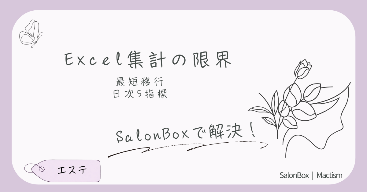 エステのExcel集計は多店舗化で工数・ミス・属人化が増えます。限界サインの見極め方と、CSV取り込みで自動化へ移行する最短ステップを解説。