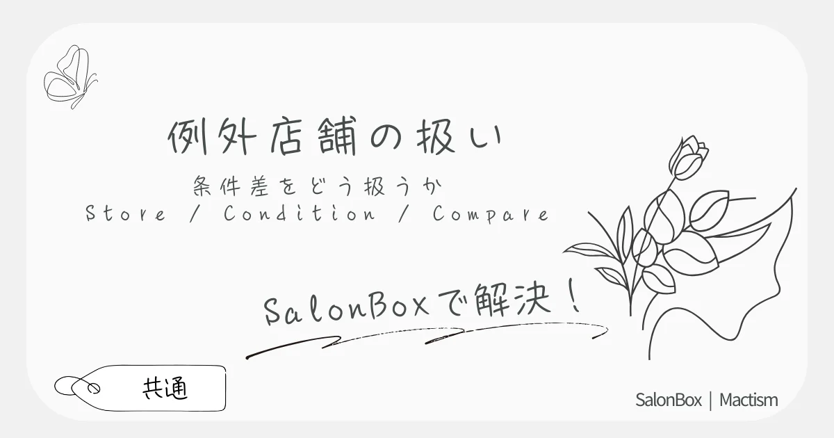 多店舗運営では、条件が異なる“例外店舗”が必ず生まれます。例・・・